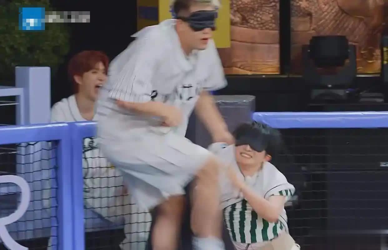 孟子义没跑几步就开始弯腰喘气,全程几乎都靠周深才完成这个游戏。